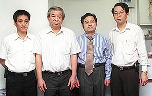 | 薄智云教授(右二)与新加坡针灸协会会长王善平(右三)及秘书杨新达(右一)合照。另一位是华龙医疗与医药咨询中心负责人陈仁俊。 |